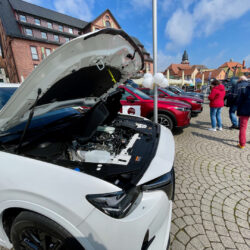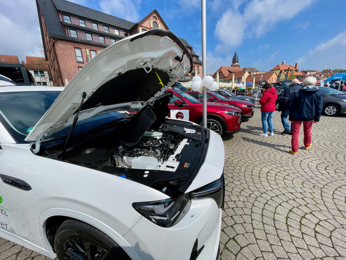 Reges Treiben gestern am Warener Hafen: Die Automesse hat erneut hunderte Besucher – große und kleine – an die Kaimauern gelockt. Nachdem der Tag zunächst ziemlich ungemütlich begann, verzogen sich die Niesel-Wolken schnell, so dass einem ausgiebigen Bummel über die Automeile nichts mehr im Wege stand. Dabei wurde ein Trend ganz deutlich: Die Zahl der Autos, die kein Benzin oder Diesel mehr brauchen oder zumindest als Hybrid unterwegs sind, wächst. Egal, ob Kleinwagen oder „dicker Schlitten“ – die E-Antriebe setzen sich offenbar immer mehr durch. Das bestätigten auch die Autohändler vor Ort, die nach eigenen Angaben derzeit so viele E-Fahrzeuge verkaufen wie noch nie.