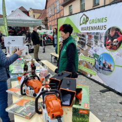 Erstmals auf der Automesse präsent: Das Grüne Warenhaus AP – Land und Forsttechnik aus Neu Schloen, das mit großer und kleiner Technik anrückte. Aber nicht nur das: Was bisher noch nicht so bekannt ist: Im „Grünen Warenhaus“ gibt’s auch regionale Produkte, unter anderem Wein aus Rattey, Honig und Wurstspezialitäten. „Wir wollten einfach einmal zeigen, wie vielfältig unser Angebot ist“, so Mitarbeiterin Jana Bülow.