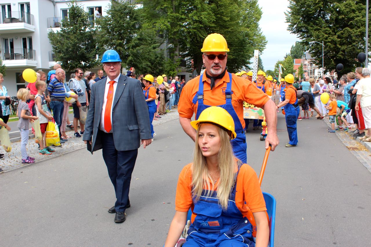 Das sind die Sieger des ersten Wanderpokals für das beste Bild beim Warener Müritzfest: Das Team der Warener Wohnungsbaugesellschaft (Wogewa) hat mit Abstand die meisten Stimmen von den Zuschauern bekommen – verdient, denn die Frauen und Männer sorgen mit ihren Ideen und ihrer guten Stimmung bereits seit einigen Jahren für viel Spaß beim Müritzfest-Umzug.