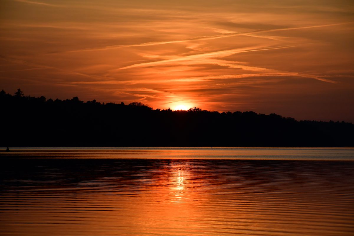 So kann es weiter gehen! Sonnenuntergang heute Abend an der Kuhtränke in Waren.