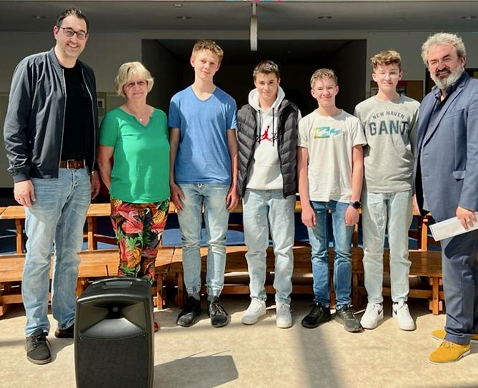 Er hat es wieder getan: Christian Dau, Vater zweier Kinder der Fleesenseeschule und Zahnarzt in Malchow, hat zum wiederholten Male die „Schulfunker“ mit neuester Technik unterstützt. Die AG, die sich um alle Licht- und Tontechnischen Angelegenheiten in der Schule kümmert, freut sich hier über eine hochwertige All-in-one-Mikrophon-Musik-Anlage, die die Schüler jetzt in Empfang nehmen konnten. In der Vergangenheit gab es auch schon mal eine Nebelmaschine oder ein Scheinwerfer-Set, da Herr Dau selber auch ein Händchen für Veranstaltungstechnik hat, unterstützt er diesen Bereich der Fleesenseeschule immer wieder gerne. Herr Weiße als verantwortlicher AG-Lehrer und die Schulleiterin Frau Cordes sind wirklich froh über so viel Engagement und sagen herzlich Danke.