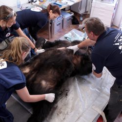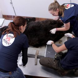 Stammzellen-Expertin Christine Fuchs von InGeneron (München): „Balou und Hanna waren die ersten Wildtiere, die wir in Deutschland mit dem System von InGeneron behandelt haben. Die Methode der Fettabsaugung ist ein relativ neues Verfahren, um Fett für Stammzellen zu gewinnen. Sie hat bei den Bären sehr gut und ohne Probleme geklappt. Wir mussten nur einen kleinen, ca. 0,5 cm großen Schnitt in die Haut machen. Beachtlich war hierbei die unglaublich dicke Haut der Bären, und dass sie sehr viel Fettgewebe hatten – was sicher auch durch den nahenden Winter bedingt ist und uns die Arbeit leichter gemacht hat. Wir freuen uns, dass wir den Bären, die in ihrem Leben schon sehr viel schlimme Dinge erlebt haben, helfen konnten.“