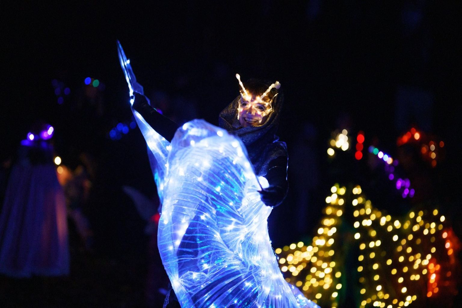 Mehr als 400 Gäste ließen sich beim Lichterfest im Bärenwald Müritz verzaubern. Denn das Besucherzentrum und der Park hatten sich am vergangenen Sonnabend in einen Zauberwald verwandelt – mit echten Elfen, Feen und Lichterwesen vom „Elphamé Fairycircus“, aber auch mit kostümierten Mitarbeitern und Mitarbeiterinnen des Bärenwaldes. Alle gemeinsam sorgten für Freude, Magie und Begeisterung nicht nur bei den kleinen Gästen.