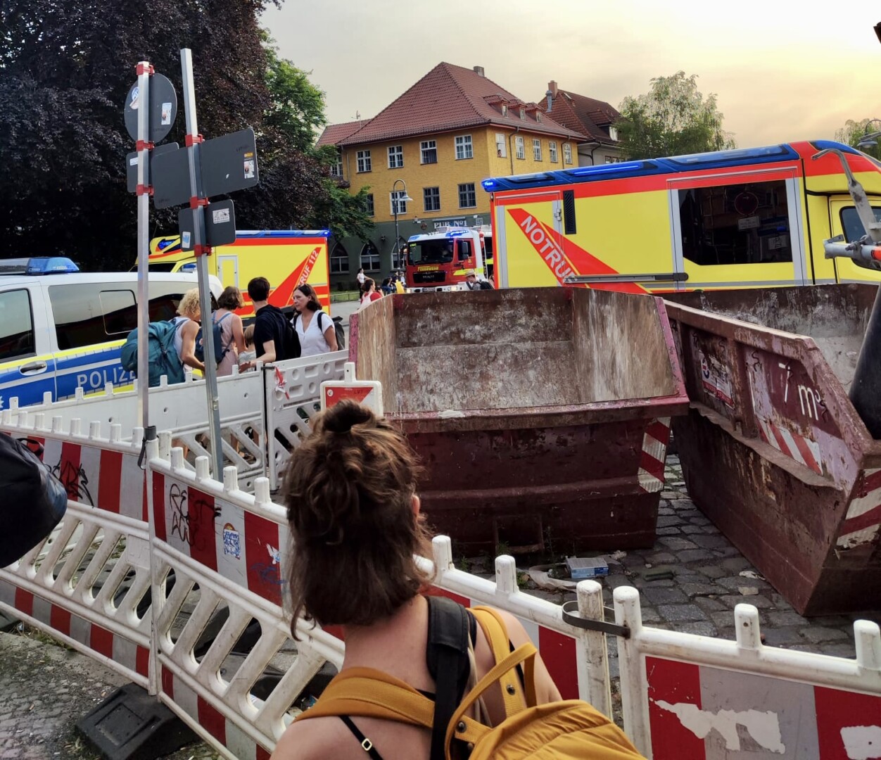 Polizei, Feuerwehr, Notdienst, DRK und Katastrophenschutz waren im Einsatz, um die Leute zu retten. Der Zugverkehr ging dann circa zwei Stunden später weiter.