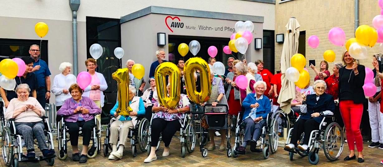 Los ging’s schon heute Vormittag mit einem Ständchen der Mitarbeiter und Bewohner, begleitet von einer Posaune. Auch Röbels Bürgermeister Andreas Sprick schaute vorbei und ließ später gemeinsam mit den Mitarbeitern des Hauses 100 bunte Luftballons in den Röbeler Himmel steigen.