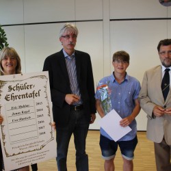 „Oskar, Lisann und Christin bekommen zum ersten Mal ein Stipendium. Sie haben ihre Leistungen enorm gesteigert und ihr Arbeis- und Sozialverhalten ist vorbildlich.“, so Ute Schmidt.