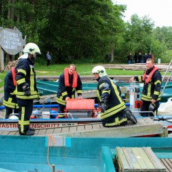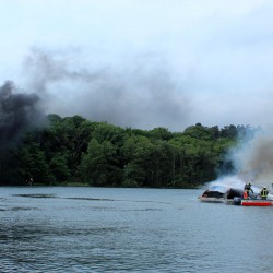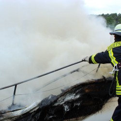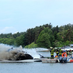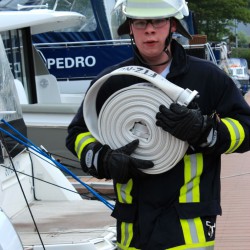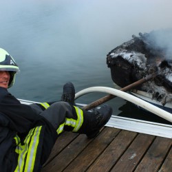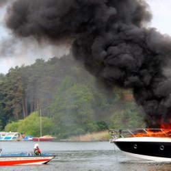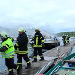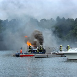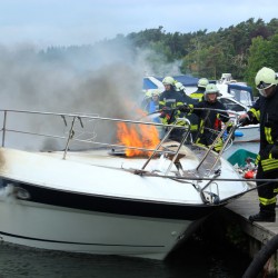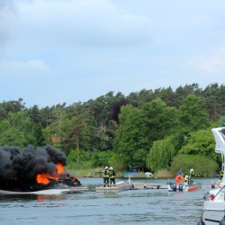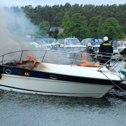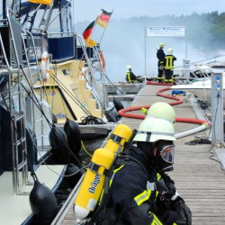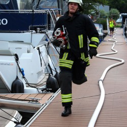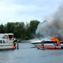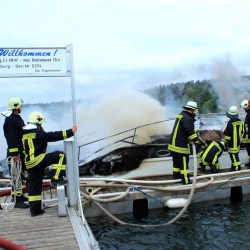 Warens Feuerwehrleute sind schnell vor Ort. Während ein Boot am Steg liegt, treibt ein anderes auf dem Eldekanal – allerdings kontrolliert an einer Leine. Das Löschen gestaltet sich dann äußerst schwierig, denn das Material lässt die Flammen immer wieder auflodern. Die Kameraden nutzen sowohl Wasser als auch Schaum. Inzwischen kommen weitere Feuerwehren hinzu. Letztendlich sind Waren, Malchow, Klink, Alt Schwerin, Groß Plasten und Alt Schönau vor Ort. Außerdem der Rettungsdienst, die DRK-Wasserwacht und der Gefahrgutzug aus Röbel.
