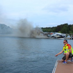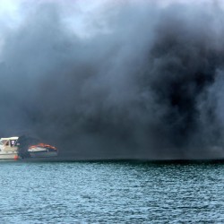 Geistesgegenwärtig springen Mitarbeiter der Marina in voller Montur und mit einem Messer im Mund ins Wasser und schneiden die Leinen durch, so dass andere Helfer die brennenden Boote von den Stegen und damit von weiteren Yachten wegziehen können.