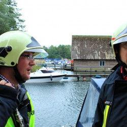 Nach einiger Zeit werden die Boote in den Hafen gezogen, um sie nach dem eventuellen Sinken besser bergen zu können. Auch ein Kran ist inzwischen eingetroffen. Sowohl in der Marina Eldenburg als auch auf der Eldenburger Brücke stehen viele Schaulustige, die meisten fotografieren mit ihren Handys und wollen die ersten sein, die ihre Bilder posten.
