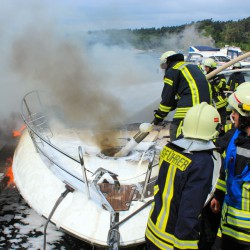 Von den beiden Booten – beides Fremdlieger – ist nicht mehr viel übrig. Der Schaden beläuft sich nach ersten Schätzungen auf rund 500 000 Euro. Die Rettungskräfte gehen von einem technischen Defekt aus, die Brandursache wird aber noch ermittelt.