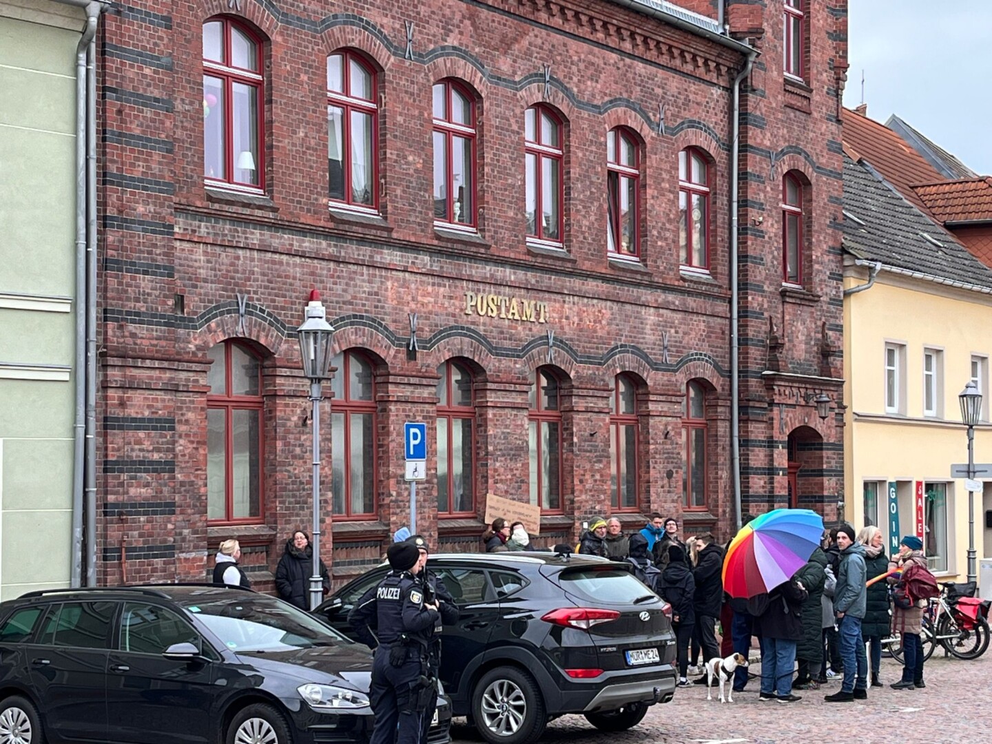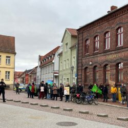 Gleich zwei Demos heute im beschaulichen Röbel. Zum einen hatte der stadtbekannte Rechte Enrico Pridöhl unter dem Motto „Mir reicht’s, dir auch? Handle!“ zu einem Autokorso und Fußmarsch aufgerufen, zum anderen gab’s an der Alten Post eine „Mahnwache gegen Rechts“. Dem Pridöhl-Autokorso folgten gerade mal ein Trecker und vier Fahrzeuge sowie etwa zehn Leute. Vor der Post versammelten sich um die 40 Röbeler, um gegen Rassismus, Ausgrenzung und Gewalt in der Gesellschaft zu protestieren. Die Polizei sicherte beide Veranstaltungen, die ohne Vorkommnisse verliefen, ab.