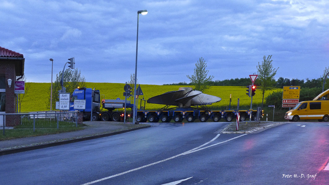 Die Schwerlaster starten um 21 Uhr und fahren über die B 192 zur Anschlussstelle Waren der Autobahn 19.