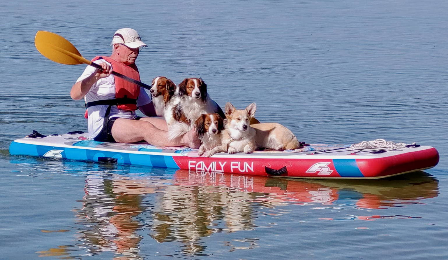 Zum Auftakt nutzten die Teilnehmer am Freitagnachmittag die Möglichkeit, an der Katamaran- und Surfmühle mit ihren Hunden ein SUP-Board auszuprobieren. Nach einer ausführlichen Einweisung drehten sie kleine Runden auf dem Board. Alle Hunde und einige Besitzer saßen oder standen zum ersten Mal auf solch einem Board. Die Hunde meisterten die Herausforderung so entspannt, dass sich auch die anfängliche Aufregung der Besitzer schnell legte. Die Begeisterung war am Ende sehr groß.