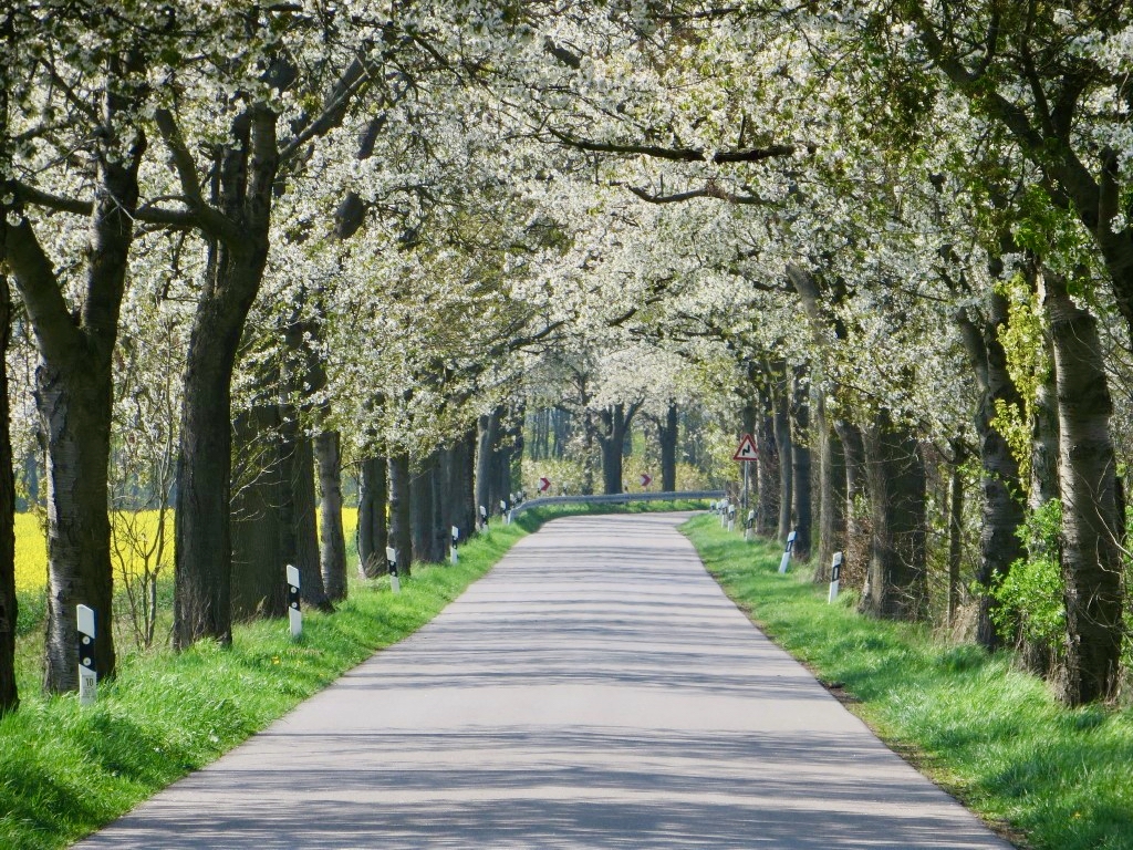 Bild oben: Entlang der Landstraße sind neue Kirschbäume gepflanzt worden.
