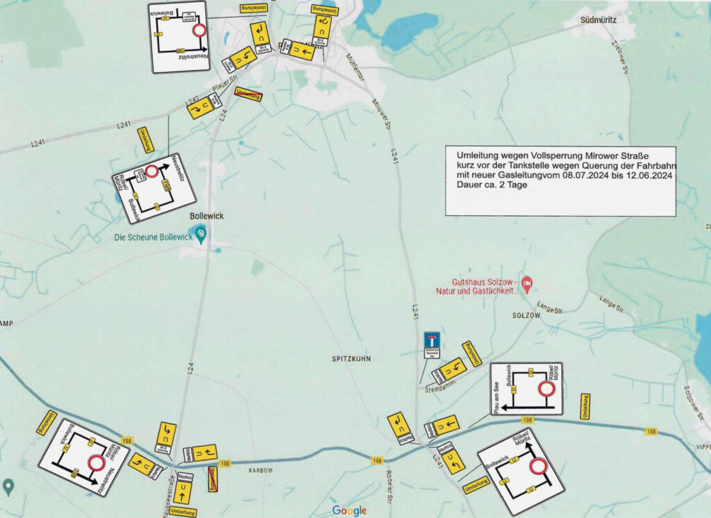 WeiterlesenIn Röbel gibt es seit heute Bauarbeiten in der Mirower Straße. Dort werden neue Gasleitungen verlegt. Die Sperrung hat eine weiträumige Umleitung zur Folge, soll aber nur bis zum 12.