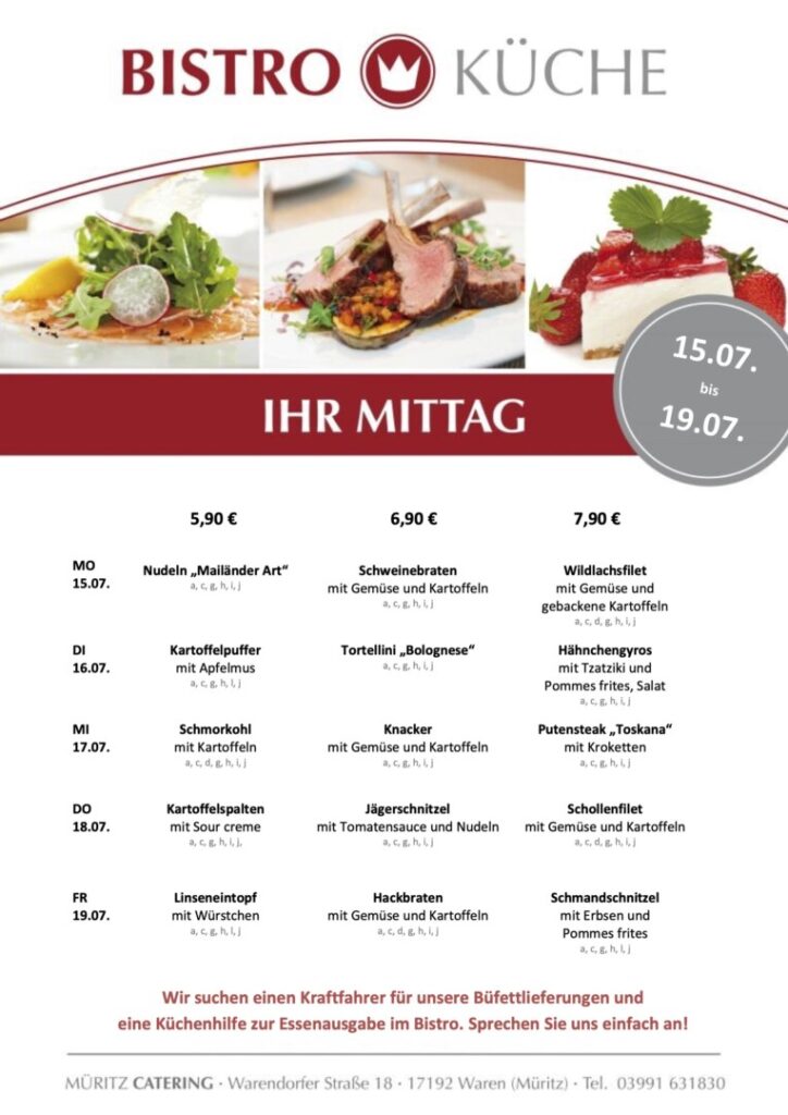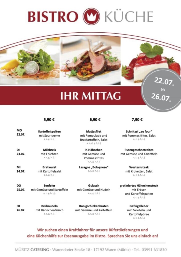 ᵂᴱᴿᴮᵁᴺᴳ | Der aktuelle Speiseplan für die Bistro-Küche in Waren