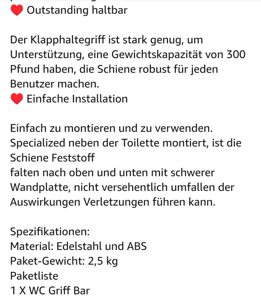 Hohe Qualität: Das Innenmaterial ist für eine langfristige Verwendung vorgesehen. Es besteht aus stabilem Edelstahlrohr mit ABS Abdeckung. Es ist antibakteriell und korrosionsbeständig.