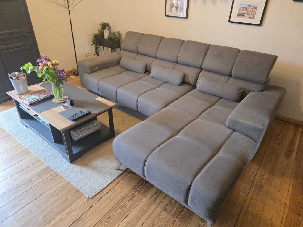 WeiterlesenBietet zum Verkauf eine Polstergarnitur mit Funktion, guter Zustand: -1x 2-Sitzer links + 1x Ottomane mit motorischer Sitztiefenverstellung rechts -3x Nierenkissen ca. 55x20cm -Stellmaß ca.: 285x201cm -Metallfüße Chrom 550 €