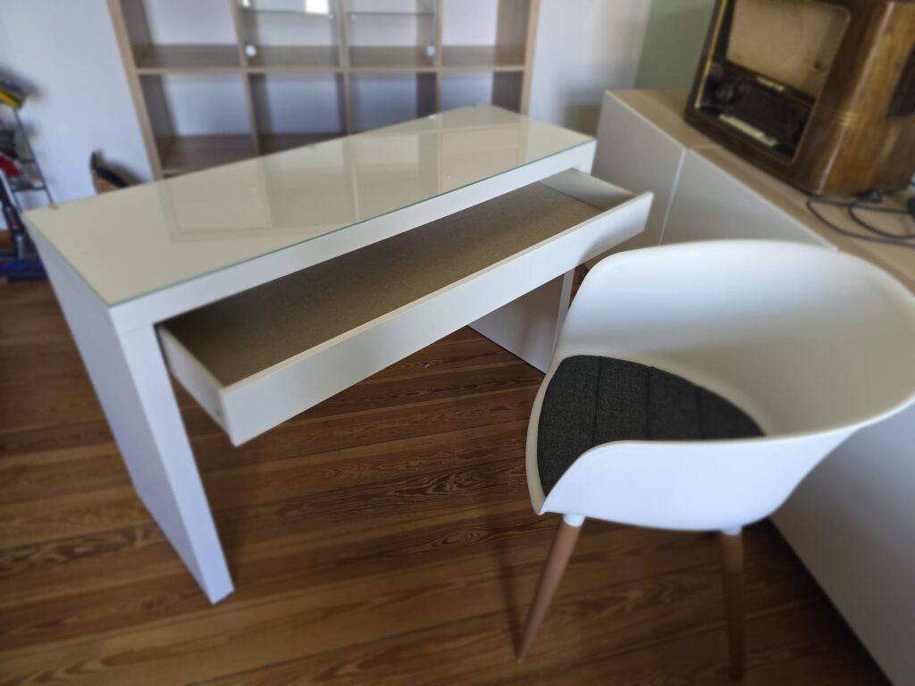 WeiterlesenMALM Frisiertisch, weiß, 120×41 cm 80,00 EUR + Stuhl 10 EUR Sehr guter Erhaltungszustand. Abholung in Waren.