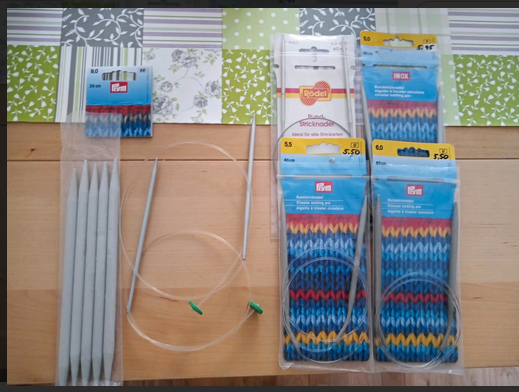 WeiterlesenANGEGEBEN IST DER EINZELPREIS VON JE 2€ ! – Nadelspiel von Prym, Stärke 9, Länge 20 cm, – Stricknadeln mit grünem Ende, Stärke 4,5-5 (nicht genau bekannt), Länge 60 cm,