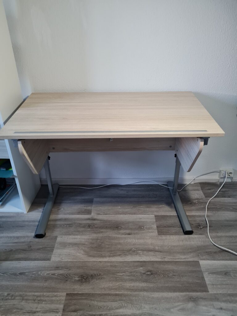 WeiterlesenKinderschreibtisch 120×80 höhenverstellbar, Schreibtischplatte ist anstellbar Farbe Eiche Sonoma Fuß Alu gebürste Gebrauchsspuren siehe Fotos Nur Abholung 100,00 € VB