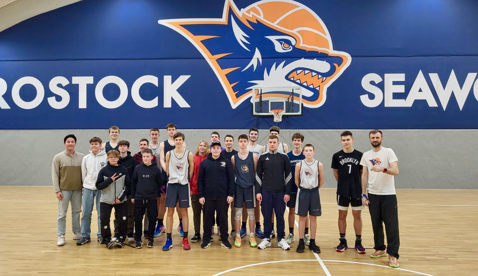 Basketball und Mecklenburg-Vorpommern – passt das überhaupt zusammen? Spätestens seit die Rostocker „Seawolves“ in die erste Basketball-Bundesliga aufgestiegen sind und dort eine erfolgreiche erste Saison spielen ist klar, dass das sogar sehr gut zusammenpasst. Und klar ist auch, dass die Basketballer der „Müritz Pikes“ (Müritz Hechte) vom TSV 90 Röbel nicht nur Fans der „Seawolves“ sind, sondern ihre Vorbilder quasi gleich vor der „Haustür“ haben. Was lag also näher für die Spieler von der Müritz zur Vorbereitung auf ihre erste Saison in der ersten Basketball-Jugendliga, sich einmal bei der U 16-Jugend Basketball Bundesliga der „Seawolves“ in Rostock umzuschauen? Und das haben sie jetzt getan.
