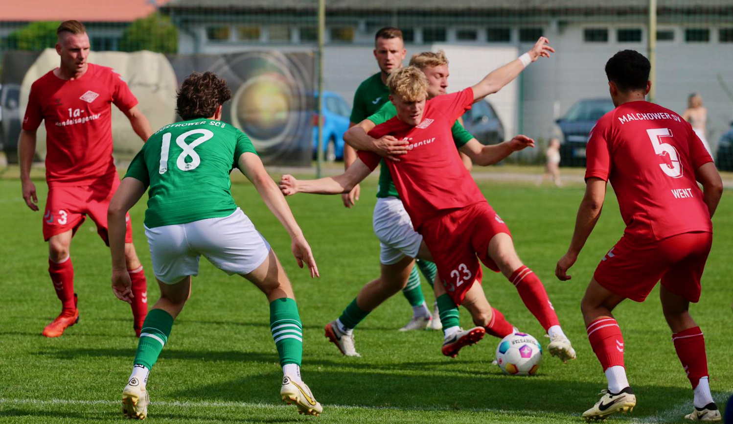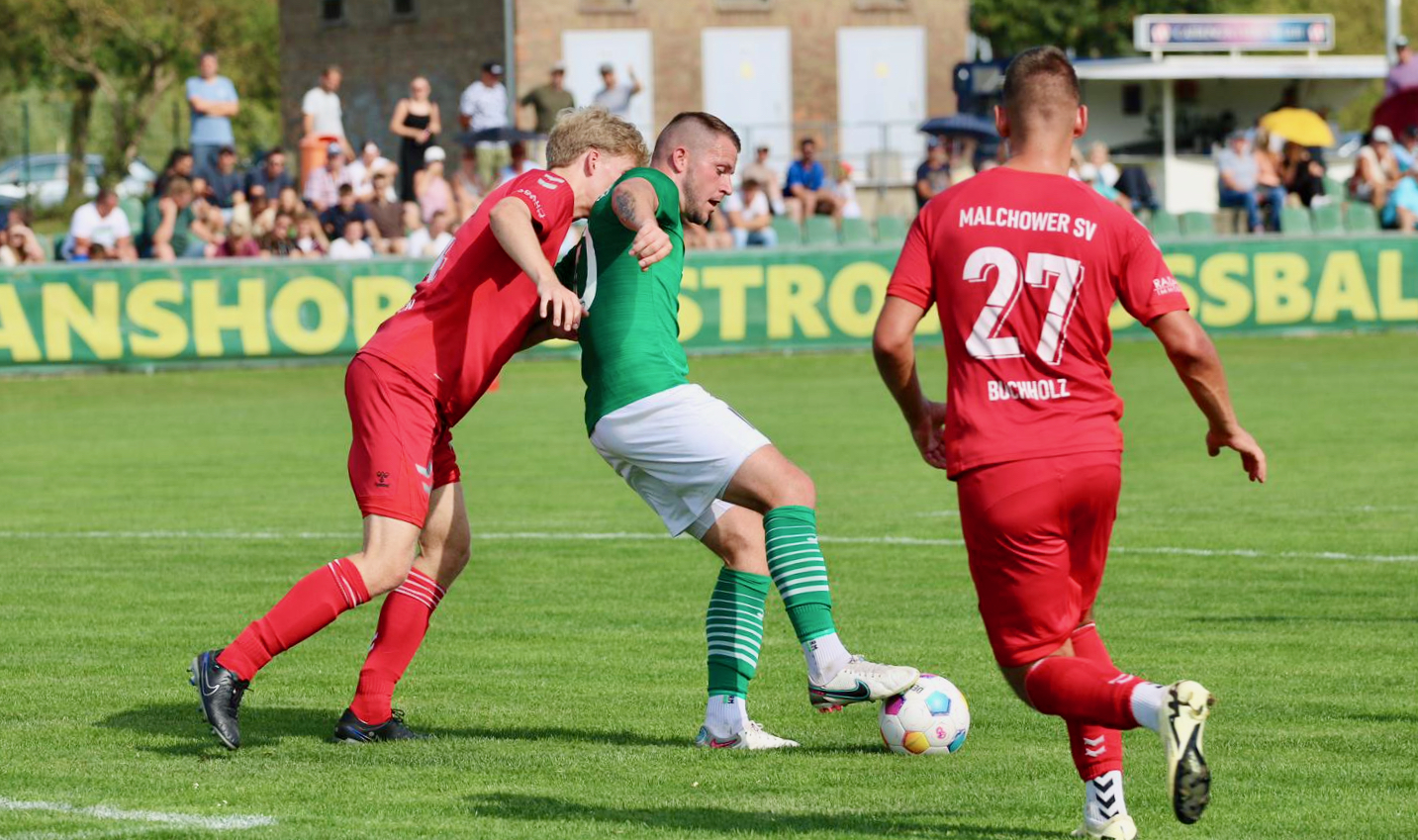 Nachdem der Malchower SV mit zwei Siegen in Pampow und zu Hause gegen Penzlin sowie mit dem Sieg im ersten Pokalspiel optimal in die Saison gestartet ist, mussten die Jungs von Trainer Sven Lange am Wochenende zum nächsten Pokalspiel beim Liga_Konkurrenten Güstrower SC antreten. In Halbzeit eins entwickelte sich ein verteiltes Spiel, wobei die Heim-Mannschaft mit einem Lattenknaller sogar die bessere Chance hatte. Aber mit einem 0:0 ging es dann in die Halbzeitpause.