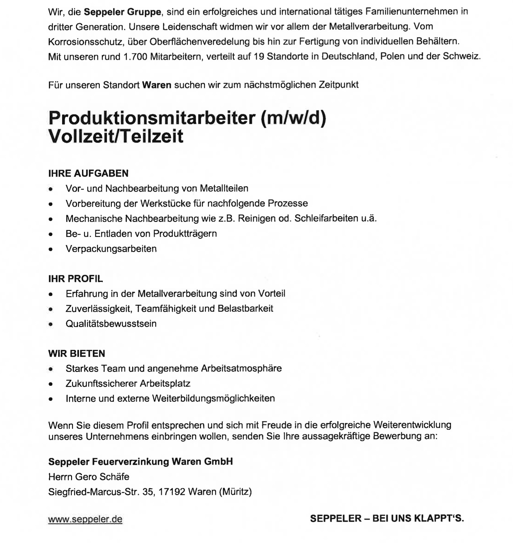Seppeler Feuerverzinkung Waren GmbH