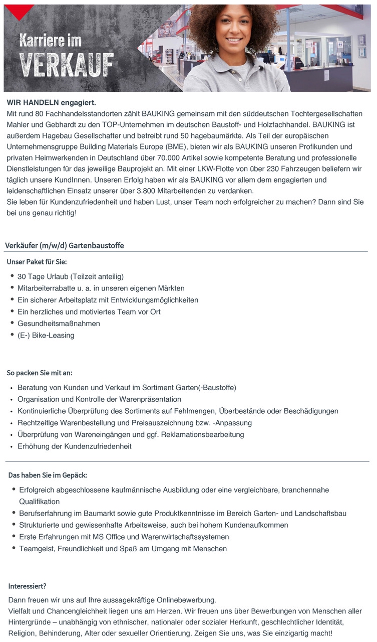 Verkäufer (m/w/d) Gartenbaustoffe