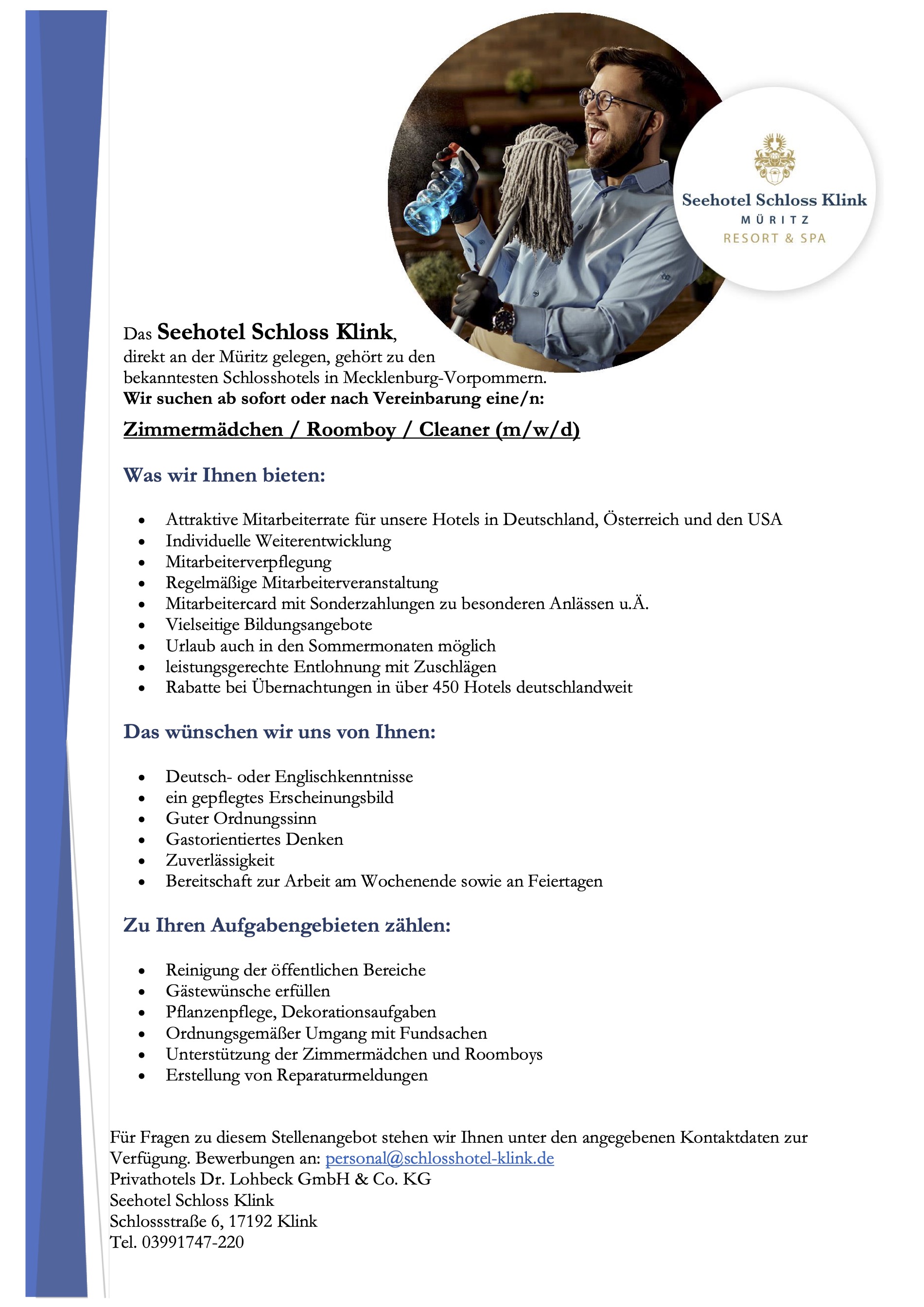 Zimmermädchen/Roomboy/Cleaner (m/w/d)